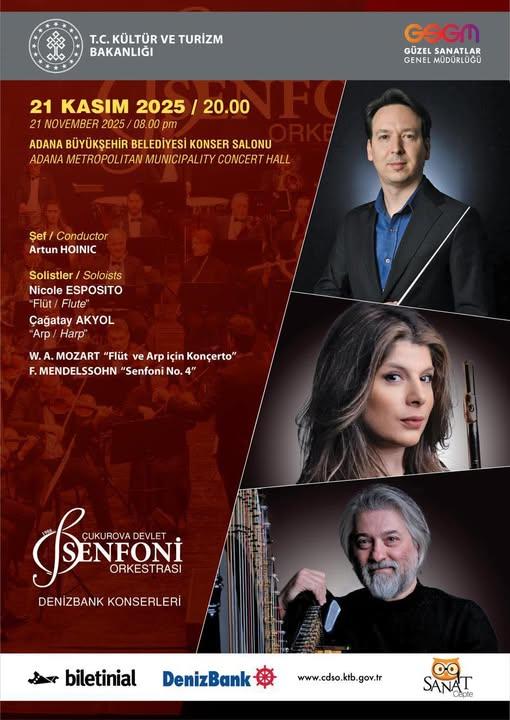 Çukurova Devlet Senfoni Orkestrası 21 Kasım 2025 Cuma günü saat 20.00’de sanatseverlerle buluşuyor. -
