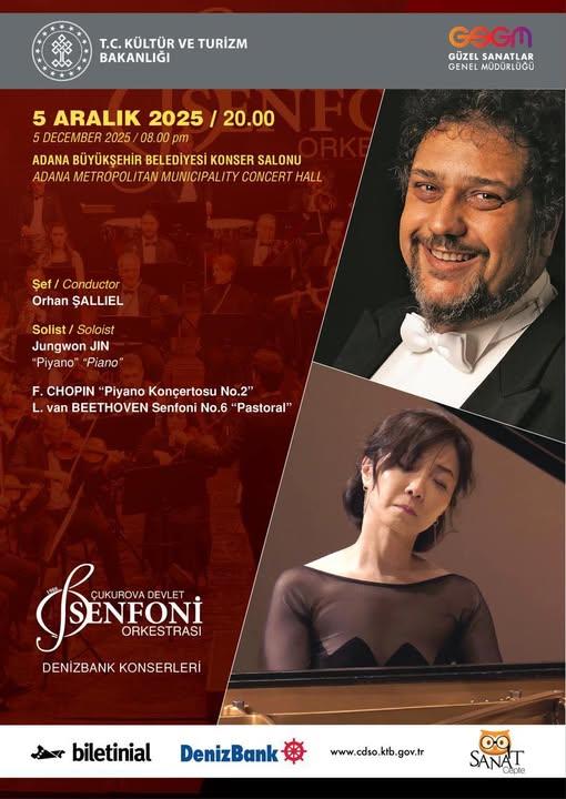 🎼 Müzikseverleri büyüleyici bir akşam bekliyor! Şef Orhan Şallıel yönetimindeki orkestra, piyanist Jungwon Jin eşliğinde: 🎹 F. Chopin – Piyano Konçertosu No. 2 🎻 L. van Beethoven – Senfoni No. 6 “Pastoral” eserlerini seslendirecek.